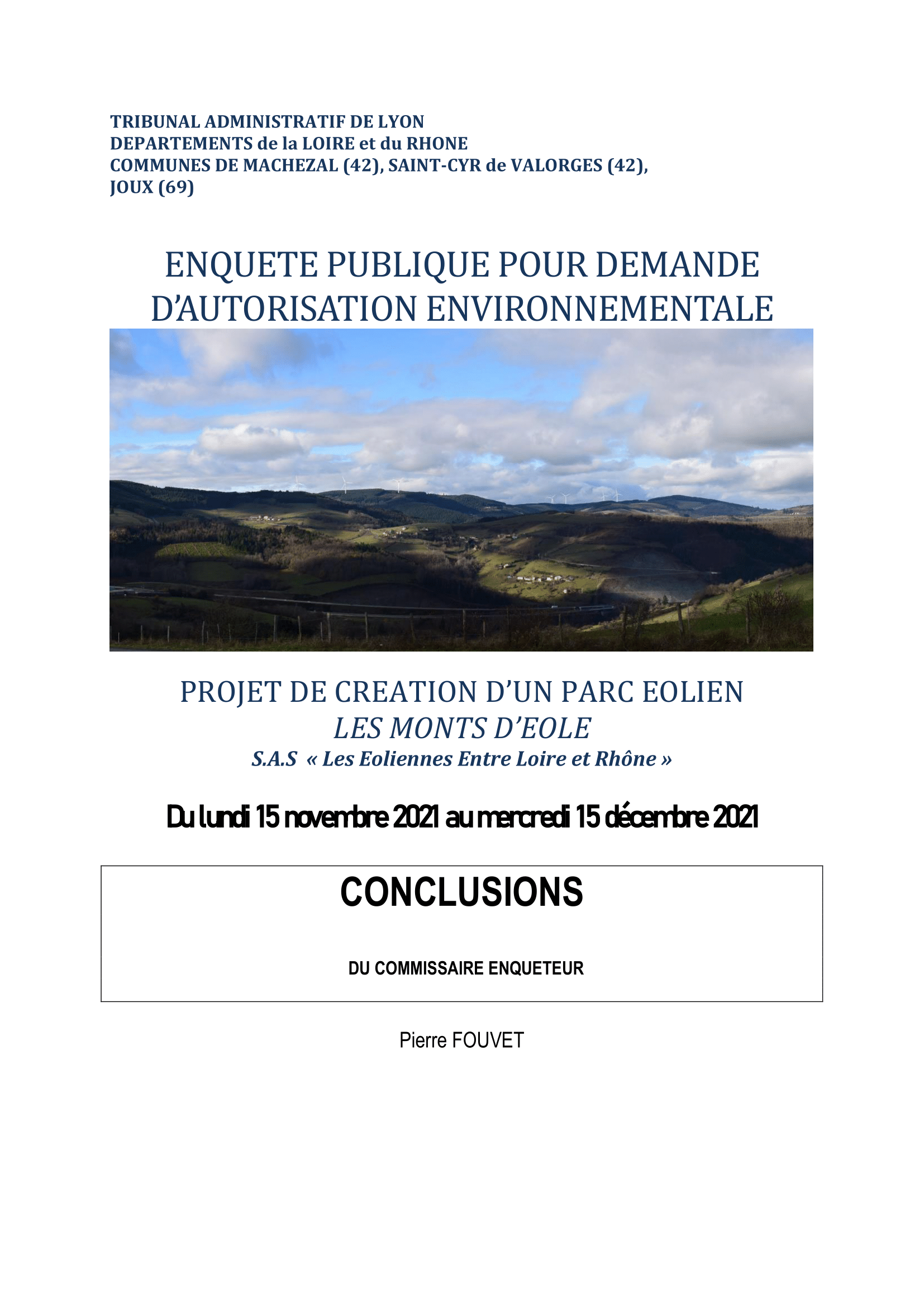 Conclusions du commissaire enquêteur sur le projet éolien