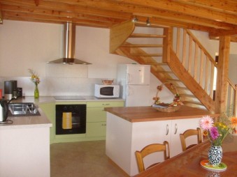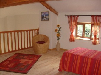 (Rc+ét) : 110 m². Séjour avec coin cuisine, coin détente, accès direct à la terrasse par baie vitrée, 2 ch ( 2 lits 140), 1 grande mezzanine avec 1 lit 90. Salle d'eau avec douche à l'italienne, ch central par plancher chauffant. Abri voiture. Lecteur DVD.Chaises longues. Ce gîte conviendra aux amoureux de la nature et du calme, idéal pour le repos et les activités nature avec de nombreuses randos possibles dans les paysages de paturages et de bois qui l'environnent.Orientation sud/est pour un ensoleillement maximum.